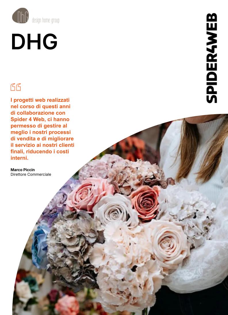 Spider 4 Web ha supportato la crescita di DHG attraverso lo sviluppo di diverse soluzioni tecnologiche, come l'interfaccia web per il sistema gestionale, l'app mobile per la rete commerciale e il portale e-commerce B2B.
